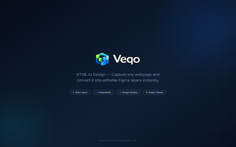 Veqo — это мощное дополнение для Chrome, которое преобразует живые веб-страницы в структурированные дизайны Figma, предлагая такие функции, как авто-раскладка, умное извлечение интерфейса и генерация токенов дизайна. Этот инструмент предназначен для UI/UX и продуктовых дизайнеров, облегчая создание редактируемых дизайнерских ресурсов непосредственно с любой веб-страницы. Благодаря интеллектуальной группировке и чистой структуре слоев Veqo значительно упрощает процесс дизайна, делая его более удобным для создания и поддержки дизайнерских систем.